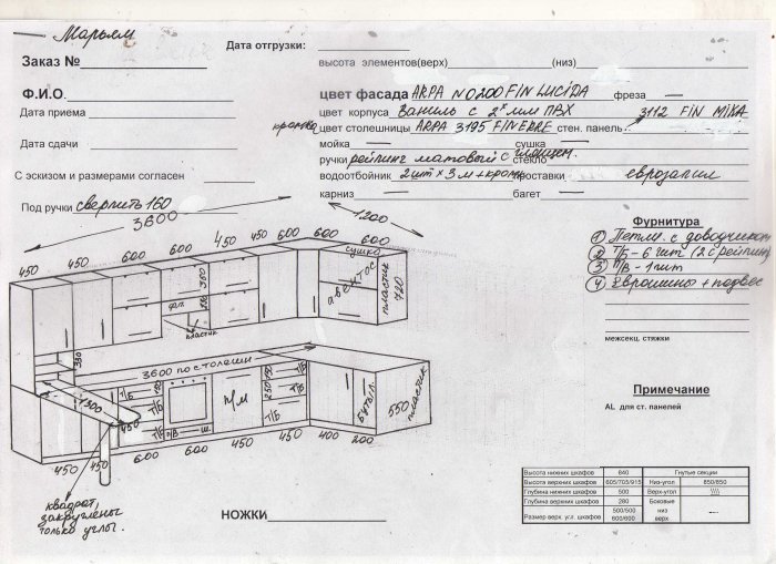Изготовление мебели – задача первоочередная, чем отделка рабочей зоны, т.к. позволяет учесть не только особенности планировки кухонного помещения, но и физиологические особенности человека.