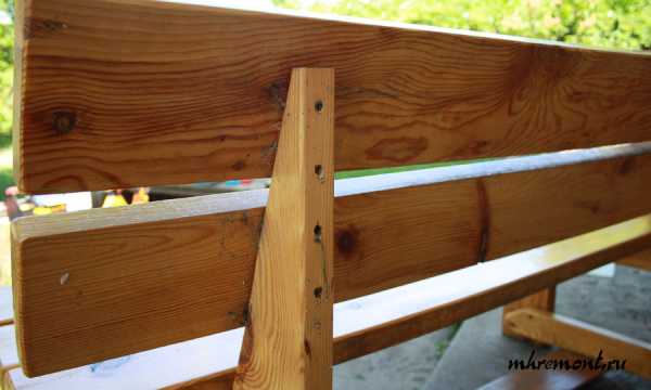 Так же если просто покрыть лаком скамейку она будет шершавой. Чтобы скамейка была гладкой нужно сначала покрыть ее одним слоем лака, дождаться когда он высохнет. После чего наждачной бумагой обработать появившиеся шершавые места, после чего покрыть еще двумя слоями лака. Тогда скамейка будет гладкой. На фото скамейка которой идет четвертый год.