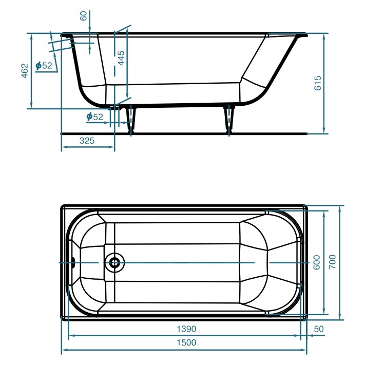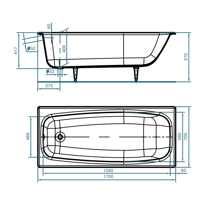 Для чугунных ванн СНиП установил стандарт от 50 до 60 см. Индивидуальные модели изготавливаются с усиленными ножками.