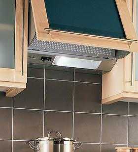 Вытяжка очищает воздух от частиц жира, поэтому отделка стен и мебельных фасадов служит дольше, не меняя своего первозданного вида. Если же семья большая и готовить приходится часто, то вытяжная система – предмет первой необходимости, т.к. на плитке и гарнитуре довольно быстро нарастает толстый слой липкого желто-серого налета. Впрочем, в семье, где готовят мало и редко, а плита электрическая, можно обойтись другими средствами – проветриванием, электровентилятором в вентиляционном отверстии и т.п.