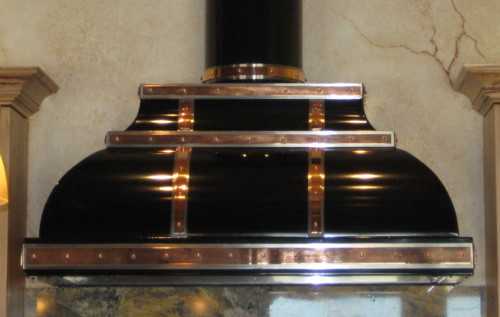 - Купольные. Конструкции такого типа по виду напоминают колпак или купол, который висит над кухонной плитой. Их крепят к стене или потолку. Чаще всего эти модели работают по проточному принципу. Дизайн – любой. Есть приборы с хромированными, стеклянными, позолоченными элементами. Технические параметры, габариты и дополнительные функции зависят от моделей, но при желании можно найти практически любой вариант.