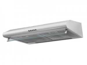 При расчете размера следует ориентироваться на ширину плиты. Обычно ширина варочной поверхности составляет 60-90 см. Рабочая зона вытяжки должна полностью покрывать ее и ближайшее пространство. Например, для плиты шириной 90 см лучше всего выбрать вытяжку шириной от 120 см. Многие модели таких размеров выглядят компактно за счет продуманного дизайна. Также можно установить рециркуляционную систему без воздуховода или выбрать встраиваемую конструкцию.