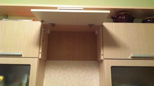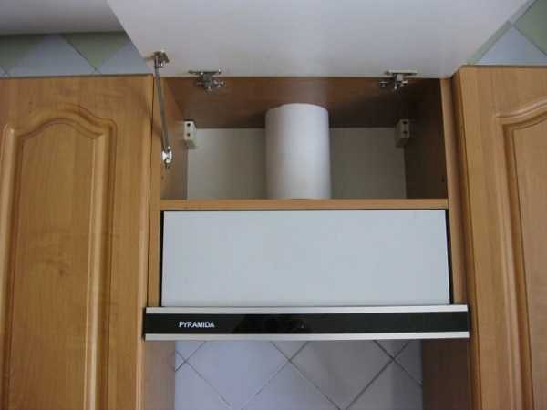 Если в шкафу, где будет установлена вытяжка для кухни, есть полки, можно дополнительно зафиксировать прибор, прикрутив его крышку к нижней полке. Некоторые легкие модели наподобие подвесных, можно непосредственно установить под полкой или нижней стенкой мебели. Тогда не придется высверливать дополнительные отверстия в видимых частях шкафа.