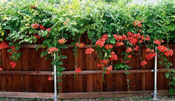 Среди неприхотливых в уходе вьющихся растений стоит выделить также и кампсис.