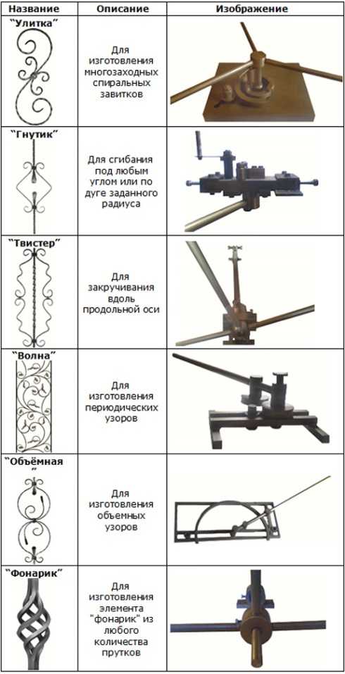 Необязательно иметь в своем распоряжении полноценные станки для художественной ковки, часто любители изготавливают инструменты своими руками. С помощью самодельного оборудования можно придавать заготовкам всевозможные причудливые формы. Нужно только обзавестись определенными навыками работы. Поэтому готовьтесь к тому, что для того, чтобы согнуть требуемую фигуру, будут необходимы чертежи и немалые усилия. Выполнение работ возможно только с использованием сырья необходимой толщины.