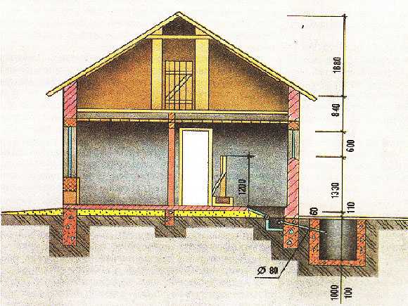Фундамент заливали бетоном, приготовленным в бетономешалке. Для прочности в каждый пробурённый шурф заранее вставлялся арматурный каркас, сваренный из трёх прутов «десятки» длиной по 1,2 метра.