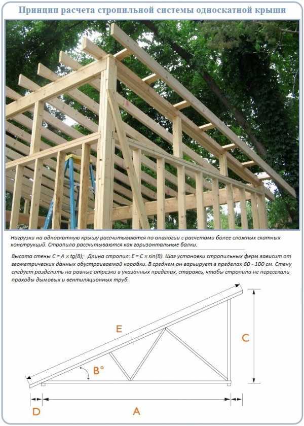 Стропильные системы скатных крыш опираются на верхнюю обвязку каркасной постройки, играющей роль мауэрлата. При устройстве односкатной крыши в классическом варианте стропила укладываются отдельно на стенки разной высоты.
