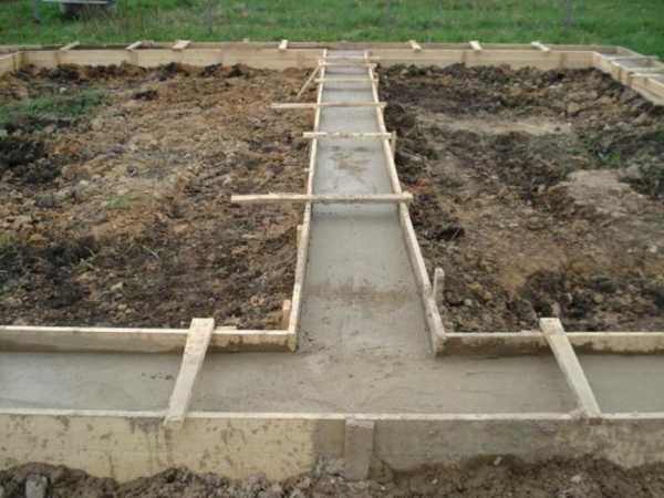 Теперь необходимо залить бетон. Через 5-6 дней, когда фундамент застынет, можно разбирать опалубку и приступать к строительству стен.
