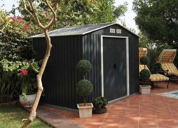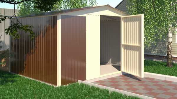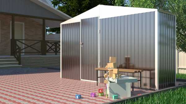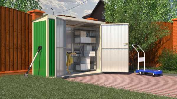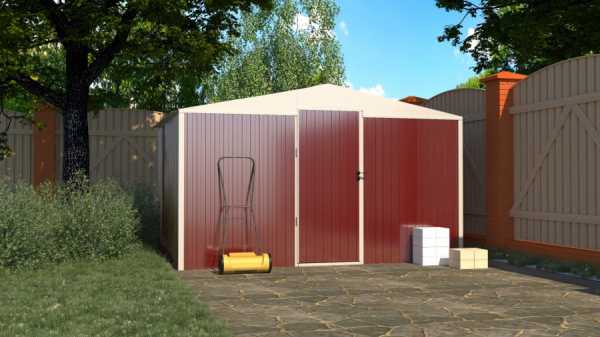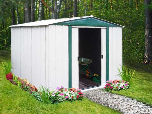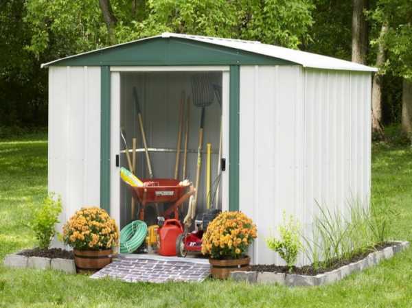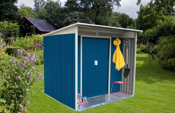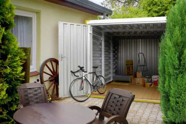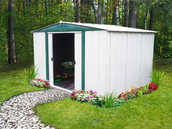 Рис.2. Металлический хозблок для дачи может быть установлен как первое строение на участке, так и как стационарное для хранения инструмента и садовой техники. Металлический хозблок относится к быстровозводимым строениям.