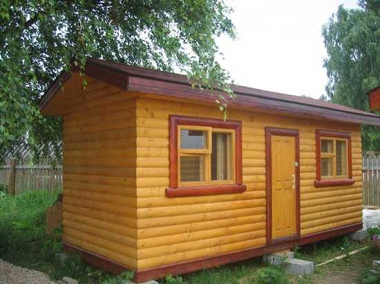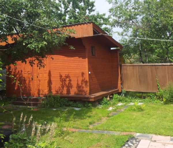 Лучшим решением для отделки хозблока для дачи является покраска алкидными составами. Тонирующие пропитки прекрасно впитываются древесной структурой, что способствует повышению выносливости последней.