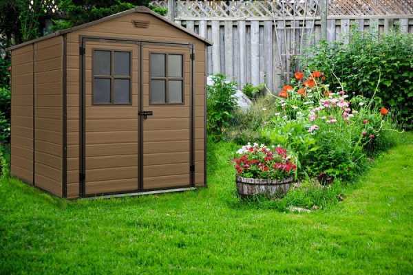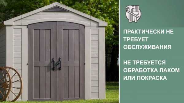 Пластиковые хозблоки имеют пол, вентиляцию и окна, поэтому в нем будет чисто, сухо и светло, без проведения электричества. Материал хозблока не гниет, не ржавеет и не требует ухода. Срок службы более 10-ти лет.
