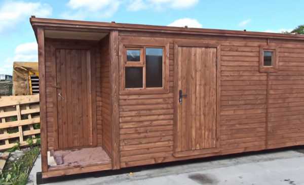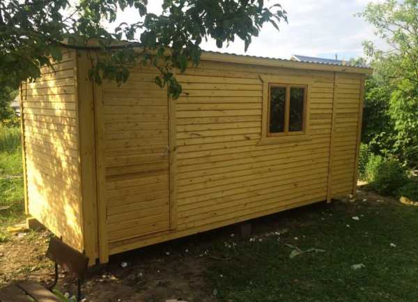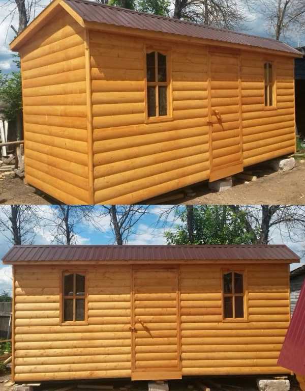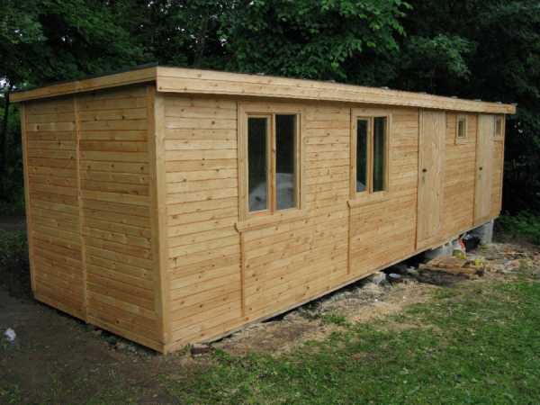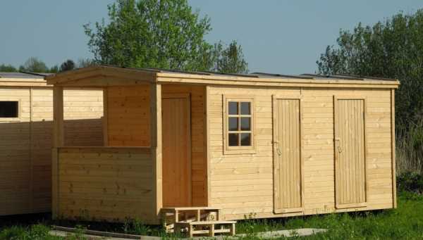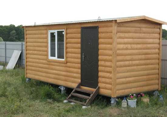 Мобильная бытовка. Данный вид хозяйственного строения подразумевает наличие колес и механизма для крепления к какому-либо транспорту, благодаря чему хозблок может менять свое месторасположение.