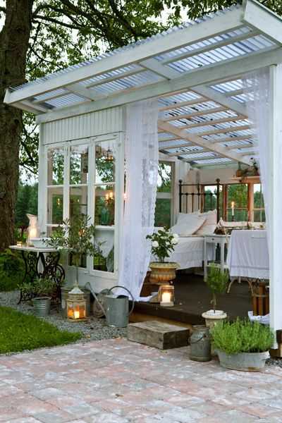 В качестве кровельного материала можно с одинаковым успехом использовать как шифер, так и рубероид. Они достаточно функциональны и доступны в ценовом плане. «Продлите» крышу поликарбонатом, обустроив, таким образом, навес над сзади лежащей территорией.
