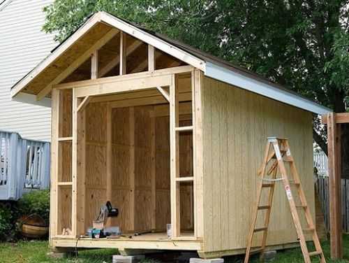 Заключительный этап — это зашивка и утепление собранного каркаса. Изнутри хозблок обычно зашивают фанерой или ОСП толщиной 10 -16 мм. Снаружи хозяйственный блок может быть облицован вагонкой, доской или сайдингом.