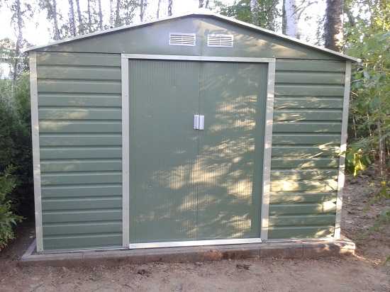 В ходе сборки металлического хозблока для дачи сварочный аппарат не потребуется. Времени на процесс уйдет несколько больше, нежели пластикового аналога, потому что у модели отсутствует напольная часть. Потребуется время на подготовку зоны установки. Ее выкладывают тротуарной плиткой или заливают бетоном.