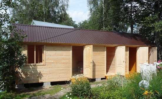 Это наиболее сложная конструкция хозблока для дачи. Ее функционал может включать: