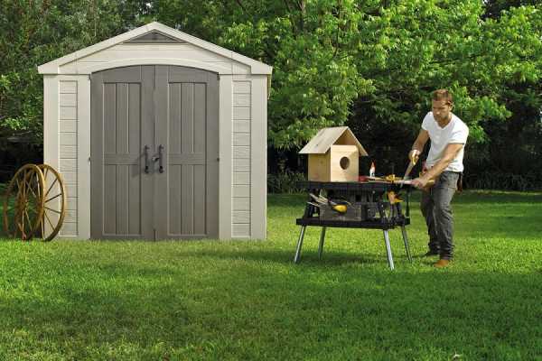 Проще всего обзавестись хозблоком, купив его. После доставки на участок конструкцию достаточно будет просто собрать и установить. Работа не займет много времени. Готовые хозяйственные строения производители предлагают в пластиковом и металлическом вариантах.