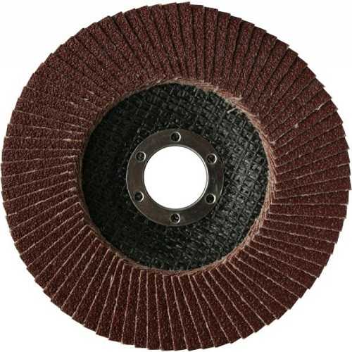 Такой круг размерами похож на отрезной. Но отличается тем, что в эксплуатации не стачивается, со временем могут износиться лишь лепестки. Основная цель применения такого устройства заключается в получении самой точной зачистки поверхности, шлифование неровной. Что касается размеров, то круг для болгарки по металлу 125 мм внешний диаметр, а посадочный 21 мм.