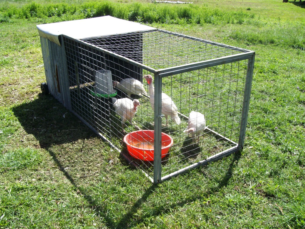 Передвижные загоны используются в теплое время года, позволяя выпасать птицу на свежей траве.