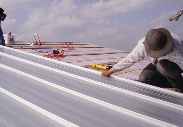 Для покрытия плоской кровли следует использовать цельный лист, без стыков. Любые стыки повышают риск проникновения влаги в пространство под кровлей. В случае же если обустроить крышу одним листом нет возможности, места стыков нужно обязательно герметизировать специальными силиконовыми средствами.