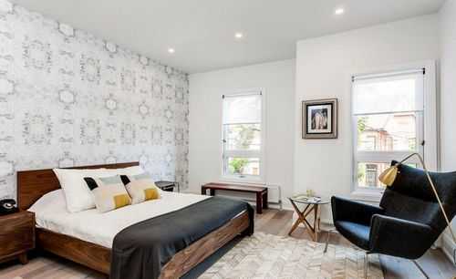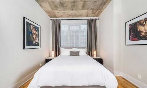 - Если спальная комната небольшая, то лучше всего поместить кровать таким образом, чтобы одна сторона плотно прилегала к стене.