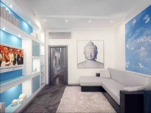 - Если комната имеет площадь свыше 30 квадратных метров, можно зонировать пространство при помощи подсветки и перегородок из гипсокартона.