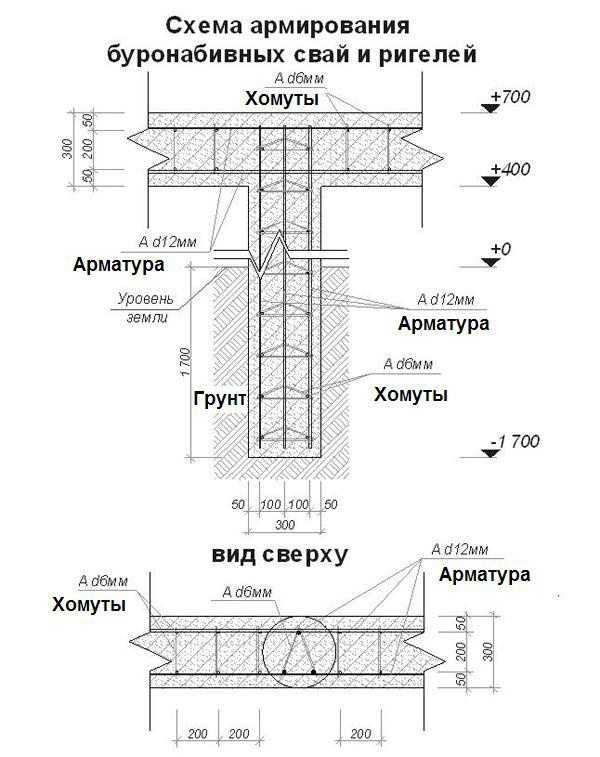 Буронабивной фундамент своими руками (каждая опора) должна заливаться за один прием. Только так можно обеспечить целостность элемента.