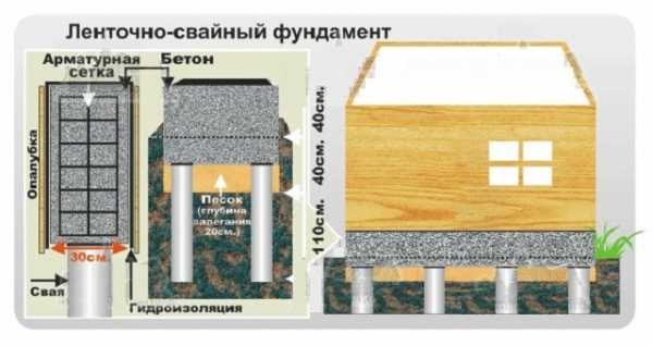 Конструкция свайно-ленточного фундамента предусматривает заглубление в грунт и максимальное укрепление основы – ростверка, которым является верхняя лента фундамента.
