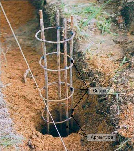 При создании каркаса необходимо чтобы он минимум на 5 сантиметров был выше, чем уровень заливки. Кроме того, прутья должны соединяться с армированием более широкой верхней части опоры. Так вы создадите монолитную конструкцию, которая будет более надежной.
