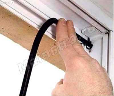 Монтаж уплотнителя начинают с нанесения клея в паз, где будет осуществляться установка. После вставляют резинки, слегка их прижимая.