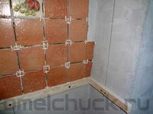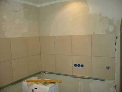 Π ΠΌΠΎΡΠΌ ΡΠ»ΡΡΠ°Π΅ Π½Π°ΡΠΈΠ½Π°Π΅ΠΌ ΡΠΊΠ»Π°Π΄ΡΠ²Π°ΡΡ ΠΏΠ»ΠΈΡΠΊΡ ΠΎΡ ΠΏΡΠ°Π²ΠΎΠ³ΠΎ ΡΠ³Π»Π° (ΡΠΏΡΠ°Π²Π° Π½Π°Π»Π΅Π²ΠΎ), ΡΠ°ΠΊ ΠΊΠ°ΠΊ ΠΌΠΎΠΉ ΡΠ°ΡΡΡΠΊ Π·Π°Π½ΠΈΠΌΠ°Π΅Ρ ΡΠΎΠ»ΡΠΊΠΎ ΡΠ°ΡΡΡ ΡΡΠ΅Π½Ρ. ΠΡΠ»ΠΈ ΠΆΠ΅ ΠΏΠ»ΠΈΡΠΊΠ° ΡΠΊΠ»Π°Π΄ΡΠ²Π°Π΅ΡΡΡ Π²ΠΎ Π²ΡΡ Π΄Π»ΠΈΠ½Ρ ΡΡΠ΅Π½Ρ, ΡΠΎ Π½Π°ΡΠΈΠ½Π°ΡΡ Π½ΡΠΆΠ½ΠΎ Ρ ΡΠΎΠΉ ΡΡΠΎΡΠΎΠ½Ρ, ΠΊΠΎΡΠΎΡΠ°Ρ Π² Π΄Π°Π»ΡΠ½Π΅ΠΉΡΠ΅ΠΌ Π±ΡΠ΄Π΅Ρ Π±ΠΎΠ»ΡΡΠ΅ Π½Π° Π²ΠΈΠ΄Ρ. ΠΠ°Π½ΠΎΡΠΈΠΌ ΠΏΠ»ΠΈΡΠΎΡΠ½ΡΠΉ ΠΊΠ»Π΅ΠΉ ΠΎΠ±ΡΡΠ½ΡΠΌ ΡΠΏΠ°ΡΠ΅Π»Π΅ΠΌ Π½Π° ΠΊΡΠ°Ρ ΠΏΠ»ΠΈΡΠΊΠΈ, Π° Π·Π°ΡΠ΅ΠΌ Π½Π΅ΡΠΊΠΎΠ»ΡΠΊΠΎ ΡΠ°Π· ΠΏΡΠΎΠ²ΠΎΠ΄ΠΈΠΌ Π·ΡΠ±ΡΠ°ΡΡΠΌ ΡΠΏΠ°ΡΠ΅Π»Π΅ΠΌ, ΠΏΡΠΈ ΡΡΠΎΠΌ ΠΎΠ±ΡΠ°Π·ΡΡΡΡΡ Β«Π±ΠΎΡΠΎΠ·Π΄ΡΒ», ΠΊΠ»Π΅ΠΉ Π΄ΠΎΠ»ΠΆΠ΅Π½ Π±ΡΡΡ ΡΠ°Π²Π½ΠΎΠΌΠ΅ΡΠ½ΠΎ ΡΠ°ΡΠΏΡΠ΅Π΄Π΅Π»ΡΠ½ ΠΏΠΎ ΡΡΠ»ΠΎΠ²ΠΎΠΉ ΡΠ°ΡΡΠΈ ΠΏΠ»ΠΈΡΠΊΠΈ.