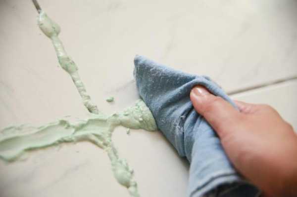 - Очистите швы от излишков затирки. Чем быстрее вы это сделаете – тем проще она будет удаляться.
