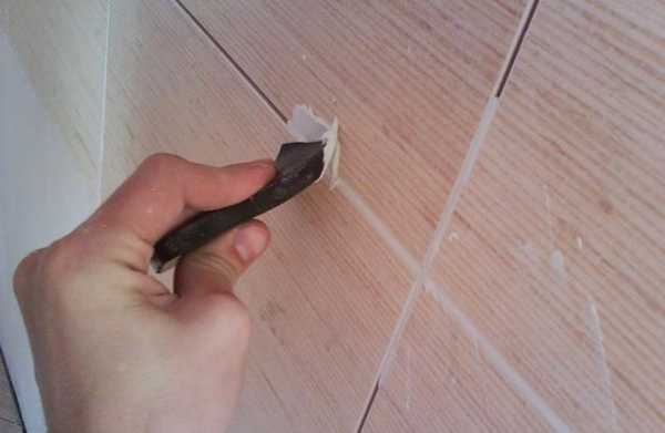 - Отверткой или другим острым предметом из швов удаляются все крестики, остатки раствора или плиточного клея (этот этап относится к подготовительным работам).