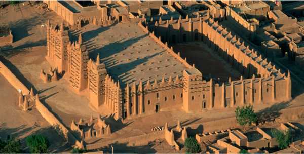 На юге от Сахары находится одно из красивых зданий мира — мечеть, которую возвели африканские племена из глиняных кирпичей. Архитектурный комплекс построен в 1906 г. и является крупнейшим сооружением в мире, которое полностью выстроено из грязи. В 1988 году мечеть вошла в список Всемирного культурного наследия ЮНЕСКО.
