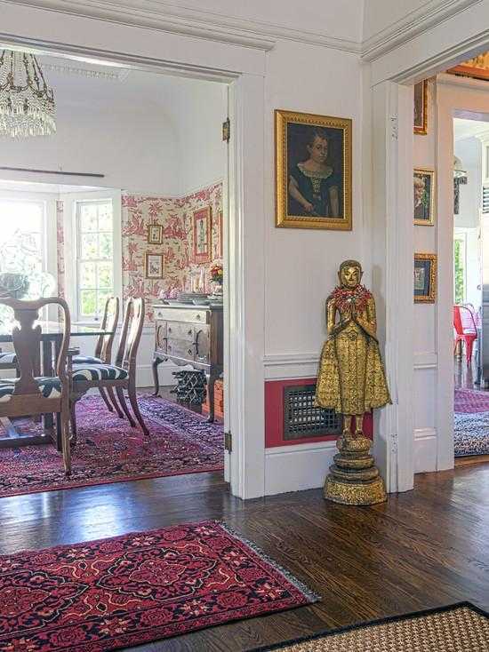 - Крупный рисунок на противоположной стене визуально приближает ее.