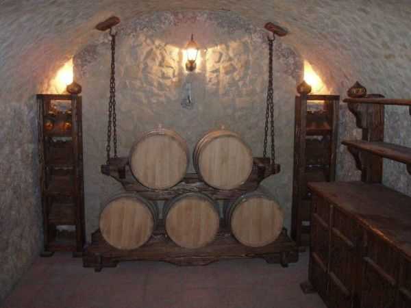 Внутри земляного подвала все может быть обустроено по желанию самого хозяина, ведь кто-то хранит там банки и картошку, а для кого-то такой погреб может стать хранилищем для вина, например.