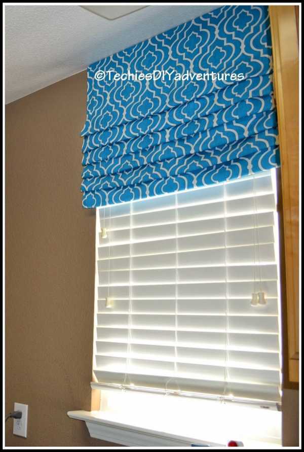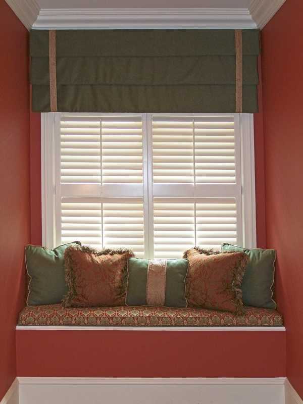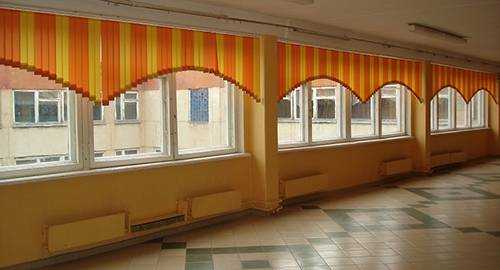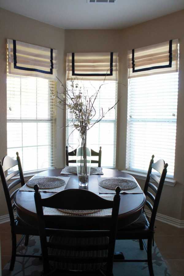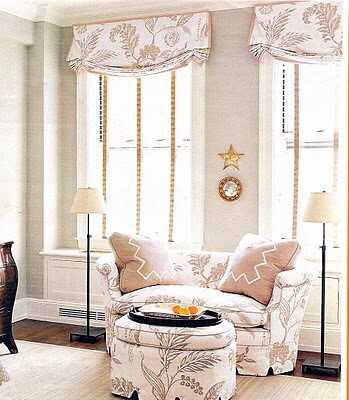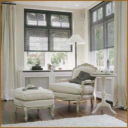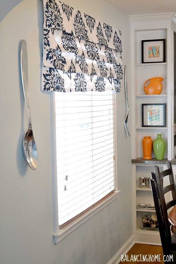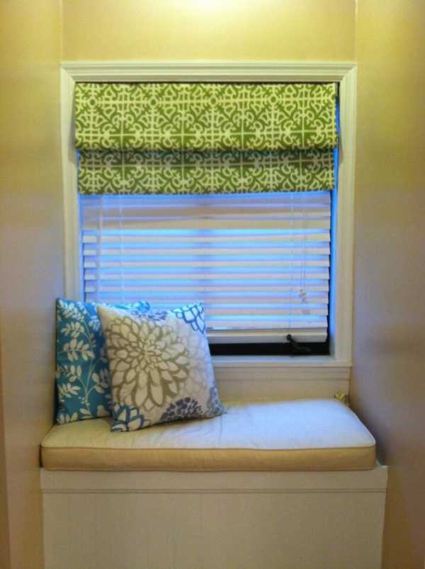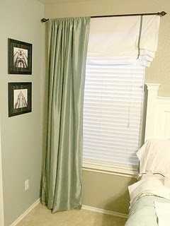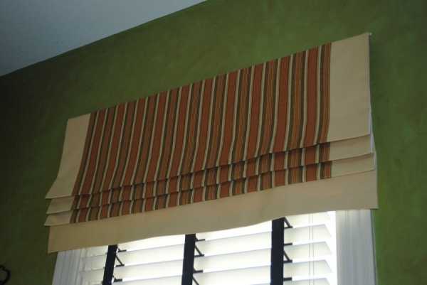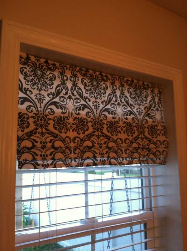 Итак, все вы знаете как выглядят римские шторы… В случае сочетания их с жалюзи необязательно делать полноценные римские, а именно, они могут быть без механизмов позволяющих их опускать и поднимать, так как жалюзи сами по себе решают проблему поступления света в оконный проем… Для этого достаточно имитировать римские шторы несколькими фиксированными складками ткани, что позволяет экономить ткань и деньги.