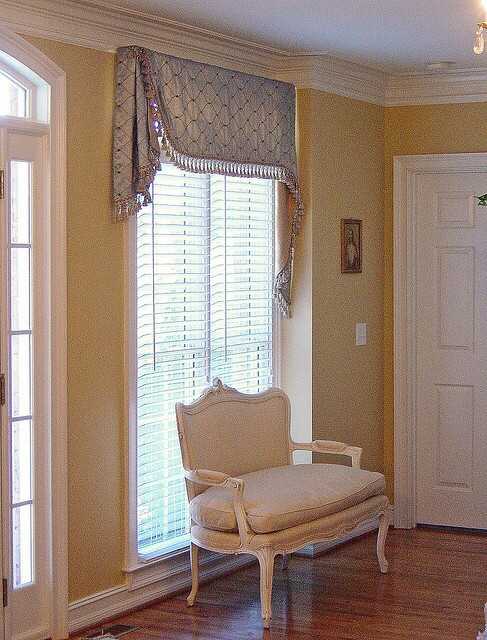 Также можно поступить и в случит штор с ламбрикеном заменив тюль на жалюзи…
