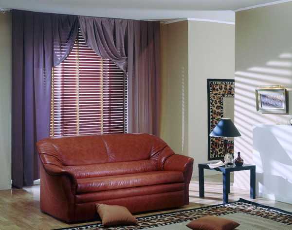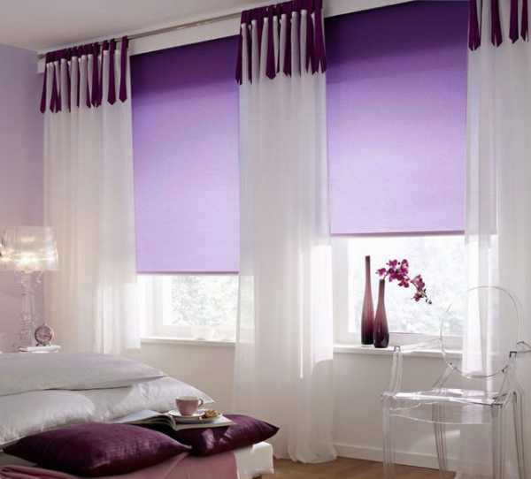 Благодаря сочетанию штор с материей происходит регулировка солнечного освещения в помещении при оригинальности декора и уютном оформлении окон.