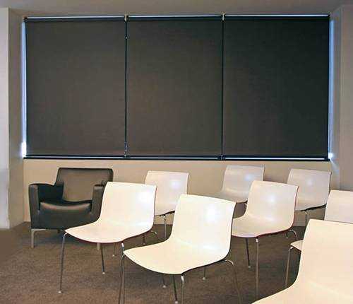 Кроме того, неудобство штор состоит в том, что, будучи закреплёнными на высоких карнизах, они достаточно тяжело управляются, а для того, чтобы закрыть большие оконные проёмы, потребуется достаточно много ткани. Потому в конференц-залах использование жалюзи является лучшим вариантом. Вы можете выбрать жалюзи с достаточным процентом защиты он солнечного света, а также плотные рольшторы для проведения видеопрезентаций, и дополнительная помощь тяжёлых пыльных портьер вам не понадобится.