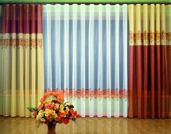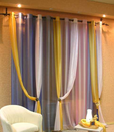 Шторы разных цветов на одном окне комбинируются по следующим принципам: