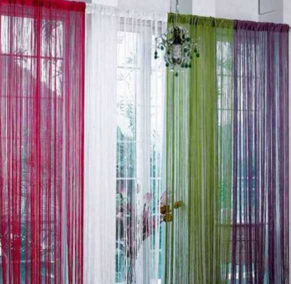 При оформлении интерьера можно комбинировать различные цвета ткани и пластика, в результате создается неповторимый колорит. При создании этих изделий используют как однотонный, так и разноцветный тюль, с оригинальным узором или гладкий.