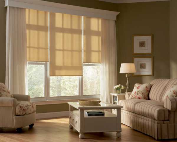 Рулонные жалюзи в интерьере более изящные, поэтому их используют в гостиных и спальных комнатах. Оптимальное освещение достигается подбором полотна достаточной плотности.