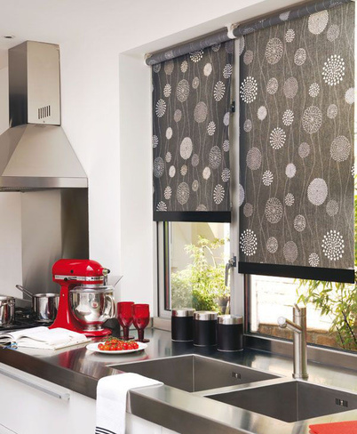 Основным преимуществом рулонных жалюзи является возможность наносить на их поверхность различные рисунки. Если посмотреть на фото жалюзи для кухни, то это могут быть мотивы подобранные именно для такого типа помещений.