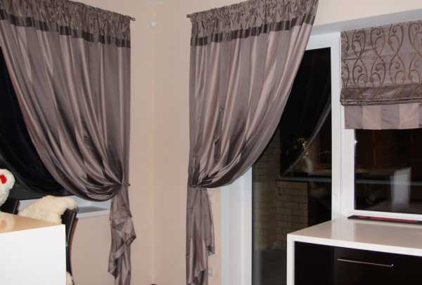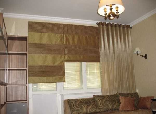 Отличным вариантом также будет комбинация портьер и римских штор.