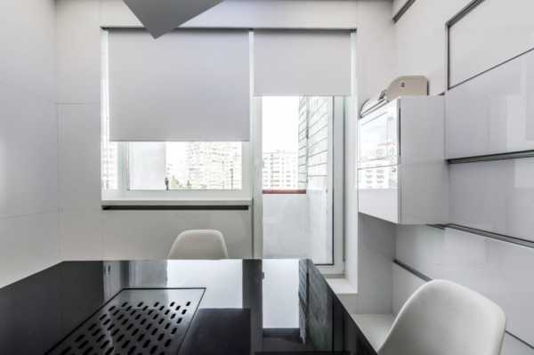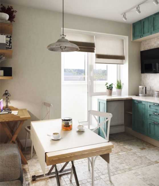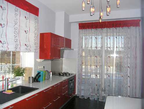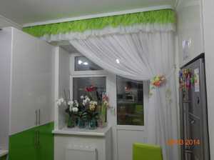 - Обилие декора, ламбрекены, оборки, драпировки для кухни с балконом неуместно.