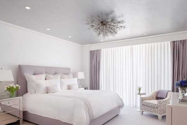 Чтобы отдых был полноценным, окно в спальне декорируется двумя видами штор, ночными и легкими. Первые из них шьются из тяжелой, не пропускающей дневной свет ткани. Легкие занавески прикрывают окно днем, создавая особую атмосферу воздушности, прозрачности. Вместо ночных занавесей можно повесить рулонные, горизонтальные жалюзи или римские шторы. Но следует учесть, что горизонтальные и римские виды штор закроют только окно, а стекло балконной двери останется открытым. Для квартир, находящихся на нижних этажах, это может стать проблемой, поэтому лучше остановиться на рулонных жалюзи или на плотных тканевых занавесках.