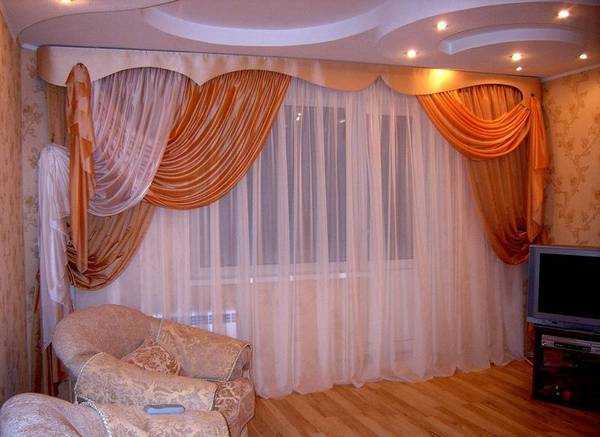 Не стоит бояться рисковать: асимметрия, многослойность, драпировки – все это уместно в главной комнате любого дома. Но важно понимать одно – балконный проем должен оставаться в свободном доступе. В остальном фантазия владельца ограничена только стилем комнаты и его пожеланиями.