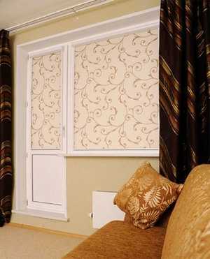 Рулонные жалюзи, даже из самой декоративной ткани, редко используются как самостоятельные шторки. Практически всегда они являются дополнением обычных занавесок. Есть два варианта использования рулонных шторок: они монтируются на окно, а на дверь нет, или на окно и на дверь. Во втором случае длина жалюзи на дверь закрывает только ее стеклянную часть.