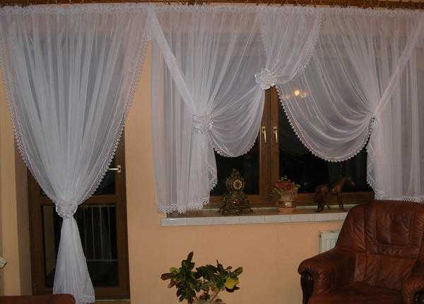 - австрийские шторы с великолепными горизонтальными фалдами до середины окна.